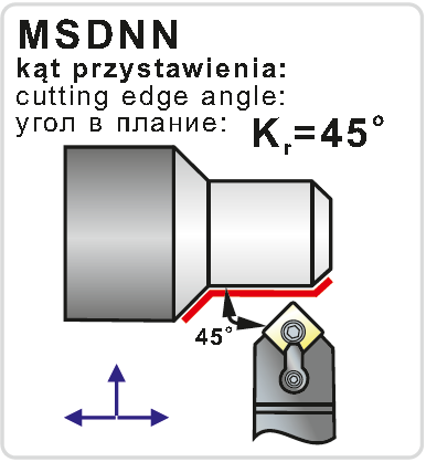 Soustružnický držák pro vnější soustružení. Výška držáku je 20 mm, šířka 20 mm, celková délka držáku 125 mm. Hlava držáku má tvar D a úhel nastavení 45°. Destičky se do držáku upínají způsobem M, tedy klínovou upínkou. Do držáku se upínají destičky č