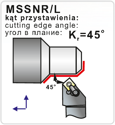 Soustružnický držák pro vnější soustružení. Výška držáku je 25 mm, šířka 25 mm, celková délka držáku 150 mm. Hlava držáku má tvar S a úhel nastavení 45°. Destičky se do držáku upínají způsobem M, tedy klínovou upínkou. Do držáku se upínají destičky č