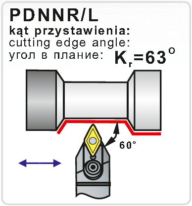 Soustružnický držák pro vnější soustružení. Výška držáku je 32 mm, šířka 25 mm. Hlava držáku má tvar N a úhel nastavení 63°. Destičky se do držáku upínají způsobem P, tedy úhlovou pákou. Do držáku se upínají destičky kosočtvercového tvaru s úhlem 55°