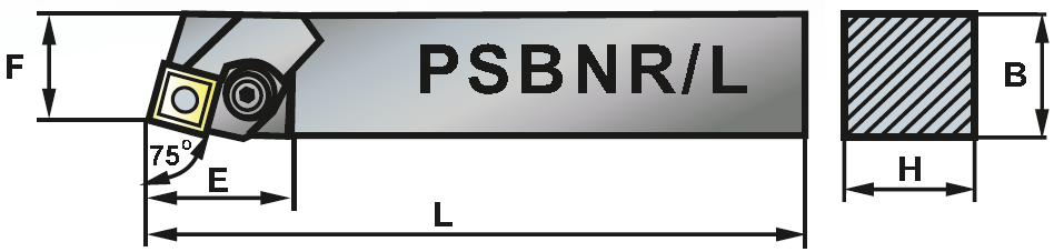 Soustružnický držák pro vnější soustružení. Výška držáku je 32 mm, šířka 25 mm. Hlava držáku má tvar B a úhel nastavení 75°. Destičky se do držáku upínají způsobem P, tedy úhlovou pákou. Do držáku se upínají destičky čtvercového tvaru velikosti 12 s