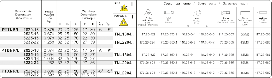 Soustružnický držák pro vnější soustružení. Výška držáku je 25 mm, šířka 25 mm. Hlava držáku má tvar B a úhel nastavení 75°. Destičky se do držáku upínají způsobem P, tedy úhlovou pákou. Do držáku se upínají destičky trojúhelníkového tvaru velikosti