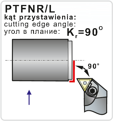 Soustružnický držák pro vnější soustružení. Výška držáku je 40 mm, šířka 40 mm. Hlava držáku má tvar F a úhel nastavení 90°. Destičky se do držáku upínají způsobem P, tedy úhlovou pákou. Do držáku se upínají destičky trojúhelníkového tvaru velikosti
