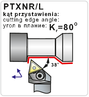 Soustružnický držák pro vnější soustružení. Výška držáku je 25 mm, šířka 25 mm. Hlava držáku má tvar X a úhel nastavení 0. Destičky se do držáku upínají způsobem P, tedy úhlovou pákou. Do držáku se upínají destičky trojúhelníkového tvaru velikosti 22