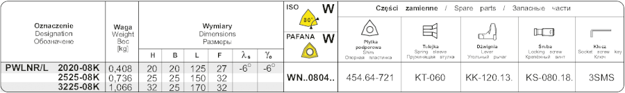 Soustružnický držák pro vnější soustružení. Výška držáku je 20 mm, šířka 20 mm. Hlava držáku má tvar L a úhel nastavení 95°. Destičky se do držáku upínají způsobem P, tedy úhlovou pákou. Do držáku se upínají destičky trigonového tvaru s úhlem 80° vel