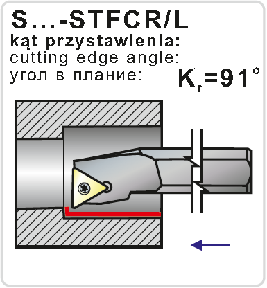 Soustružnický držák pro vnitřní soustružení . Průměr držáku je 20 mm, celková délka 250 mm. Hlava držáku má tvar F a úhel nastavení 90°. Do držáku se upínají destičky trojúhelníkového tvaru s délkou řezné hrany 6,35 mm. Úhel hřbetu destičky je 7°, sm
