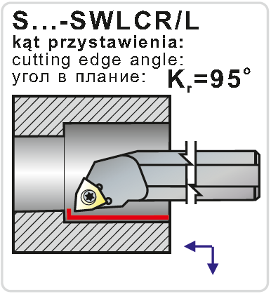 Soustružnický držák pro vnitřní soustružení . Průměr držáku je 20 mm, celková délka 250 mm. Hlava držáku má tvar L a úhel nastavení 95°. Do držáku se upínají destičky trigonového tvaru s úhlem 80° s délkou řezné hrany 9,525 mm. Úhel hřbetu destičky j