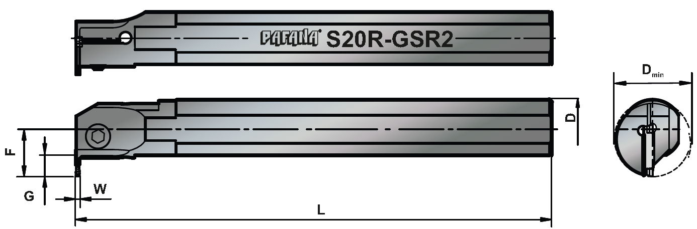 Soustružnický držák S25RGSR4 pravýpro vnitřní drážkování. Délka držáku 200 mm, průměr držáku 25 mm. Minimální průměr otvoru 32 mm, maximální hloubka drážky 7,5 mm, minimální šířka drážky 4 mm. Do držáku se upínají destičky typu PTN, PTL nebo PTR.