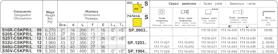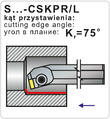 Soustružnický držák pro vnitřní soustružení . Průměr držáku je 25 mm, celková délka 300 mm. Hlava držáku má tvar K a úhel nastavení 75°. Do držáku se upínají destičky čtvercového tvaru s délkou řezné hrany 12,7 mm. Úhel hřbetu destičky je 11°, směr ř