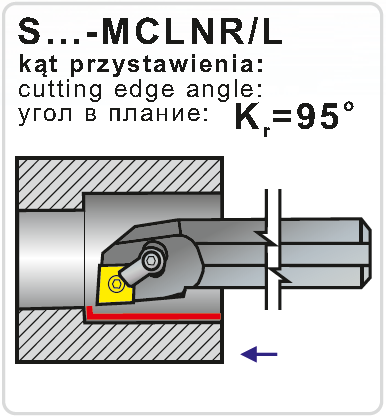 Soustružnický držák pro vnitřní soustružení . Průměr držáku je 25 mm, celková délka 300 mm. Hlava držáku má tvar L a úhel nastavení 95°. Do držáku se upínají destičky kosočtvercového tvaru s úhlem 80° s délkou řezné hrany 12,7 mm. Úhel hřbetu destičk