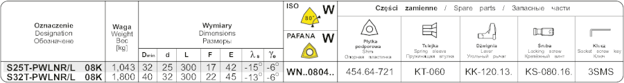 Soustružnický držák pro vnitřní soustružení . Průměr držáku je 25 mm, celková délka 300 mm. Hlava držáku má tvar L a úhel nastavení 95°. Do držáku se upínají destičky trigonového tvaru s úhlem 80° s délkou řezné hrany 12,7 mm. Úhel hřbetu destičky je