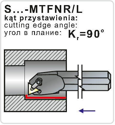 Soustružnický držák pro vnitřní soustružení . Průměr držáku je 32 mm, celková délka 350 mm. Hlava držáku má tvar F a úhel nastavení 90°. Do držáku se upínají destičky trojúhelníkového tvaru s délkou řezné hrany 9,525 mm. Úhel hřbetu destičky je 0°, s