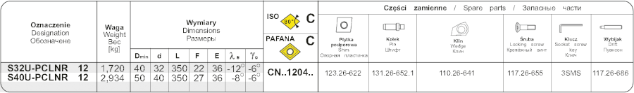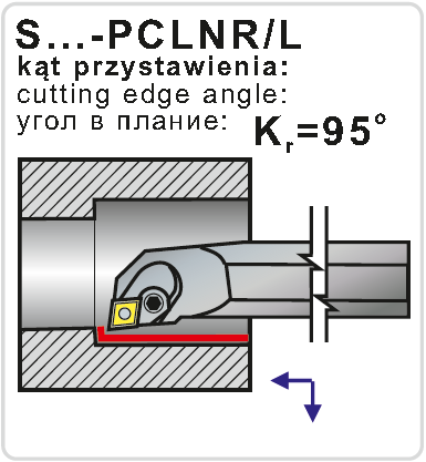 Soustružnický držák pro vnitřní soustružení . Průměr držáku je 32 mm, celková délka 350 mm. Hlava držáku má tvar L a úhel nastavení 95°. Do držáku se upínají destičky kosočtvercového tvaru s úhlem 80° s délkou řezné hrany 12,7 mm. Úhel hřbetu destičk