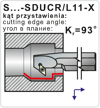 Soustružnický držák pro vnitřní soustružení . Průměr držáku je 32 mm, celková délka 350 mm. Hlava držáku má tvar U a úhel nastavení 93°. Do držáku se upínají destičky kosočtvercového tvaru s úhlem 55° s délkou řezné hrany 9,525 mm. Úhel hřbetu destič