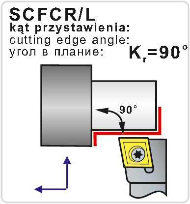 Soustružnický držák pro vnější soustružení. Výška držáku je 12 mm, šířka 12 mm. Hlava držáku má tvar F a úhel nastavení 90°. Destičky se do držáku upínají způsobem S, tedy šroubem v kuželovém otvoru. Do držáku se upínají destičky kosočtvercového tvar