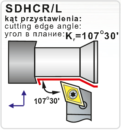 Soustružnický držák pro vnější soustružení. Výška držáku je 20 mm, šířka 20 mm. Hlava držáku má tvar H a úhel nastavení 107°30´. Destičky se do držáku upínají způsobem S, tedy šroubem v kuželovém otvoru. Do držáku se upínají destičky kosočtvercového