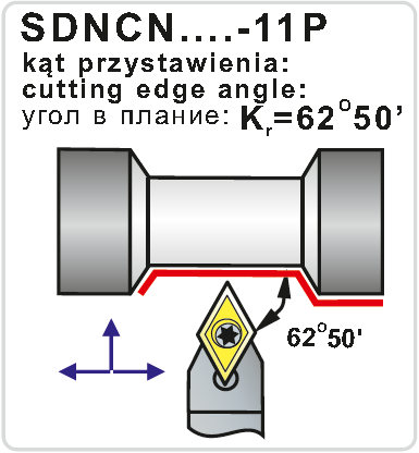 Soustružnický držák pro vnější soustružení. Výška držáku je 25 mm, šířka 25 mm. Hlava držáku má tvar N a úhel nastavení 63°. Destičky se do držáku upínají způsobem S, tedy šroubem v kuželovém otvoru. Do držáku se upínají destičky kosočtvercového tvar