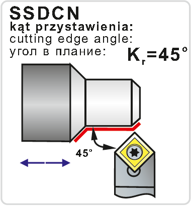 Soustružnický držák pro vnější soustružení. Výška držáku je 10 mm, šířka 10 mm. Hlava držáku má tvar D a úhel nastavení 45°. Destičky se do držáku upínají způsobem S, tedy šroubem v kuželovém otvoru. Do držáku se upínají destičky čtvercového tvaru ve