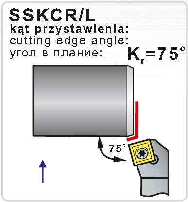 Soustružnický držák pro vnější soustružení. Výška držáku je 8 mm, šířka 8 mm. Hlava držáku má tvar K a úhel nastavení 75°. Destičky se do držáku upínají způsobem S, tedy šroubem v kuželovém otvoru. Do držáku se upínají destičky čtvercového tvaru veli