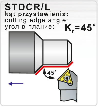 Soustružnický držák pro vnější soustružení. Výška držáku je 16 mm, šířka 16 mm. Hlava držáku má tvar D a úhel nastavení 45°. Destičky se do držáku upínají způsobem S, tedy šroubem v kuželovém otvoru. Do držáku se upínají destičky trojúhelníkového tva