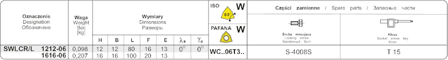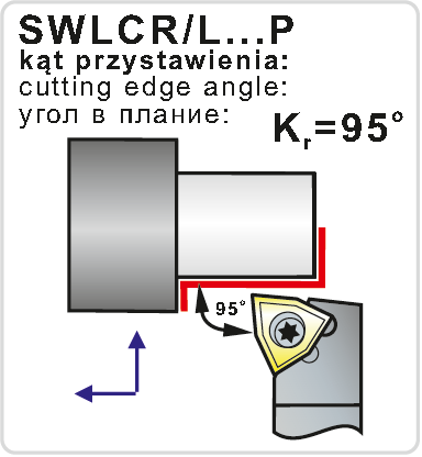 Soustružnický držák pro vnější soustružení. Výška držáku je 12 mm, šířka 12 mm. Hlava držáku má tvar L a úhel nastavení 95°. Destičky se do držáku upínají způsobem S, tedy šroubem v kuželovém otvoru. Do držáku se upínají destičky trigonového tvaru s