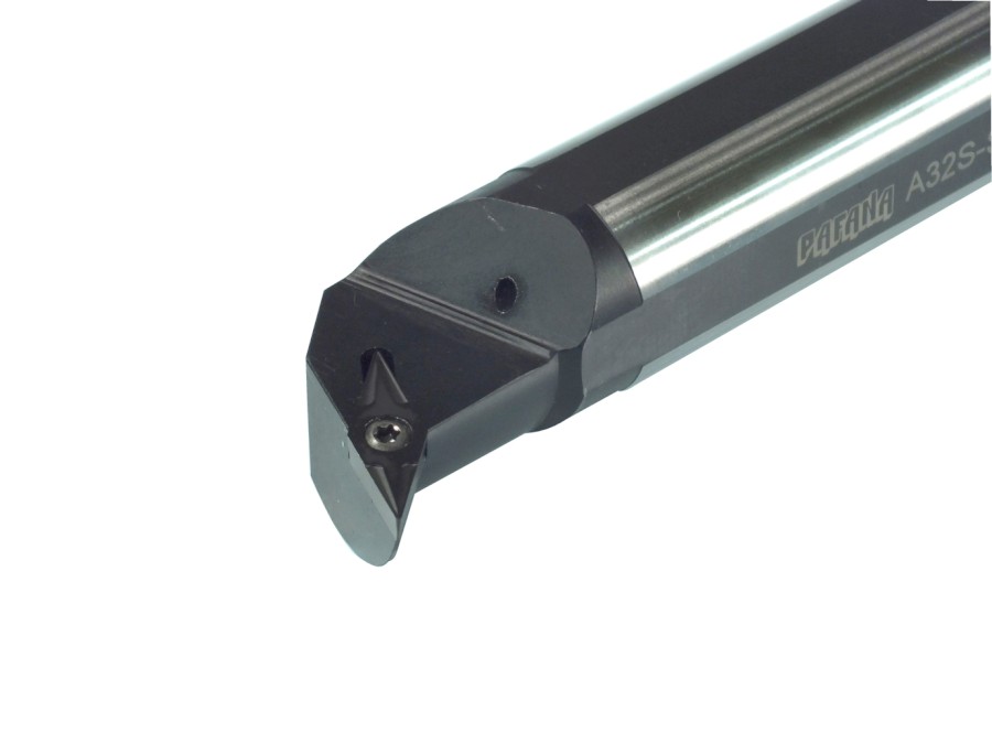 Soustružnický nůž vyvrtávací A32S-SVQBR16. Průměr držáku je 32 mm, celková délka 250 mm. Hlava držáku má tvar Q a úhel nastavení 107°30´. Do držáku se upínají destičky kosočtvercového tvaru s úhlem 35° s délkou řezné hrany 9,525 mm. Úhel hřbetu desti