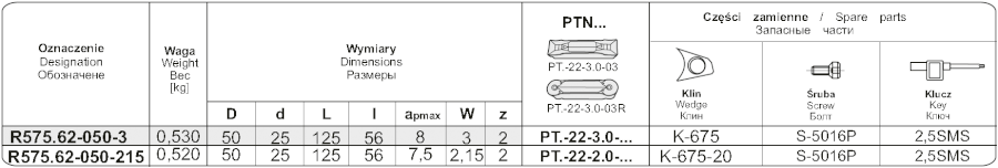Stopková fréza kotoučová R575.62-050-215 pravotočivá s průměrem pracovní části 50 mm. Drážkovací fréza. Do frézy se upínají destičky typu PTN, způsob upínání destiček F. Typ uchycení frézy - stopka válcová s ploškou typ B.