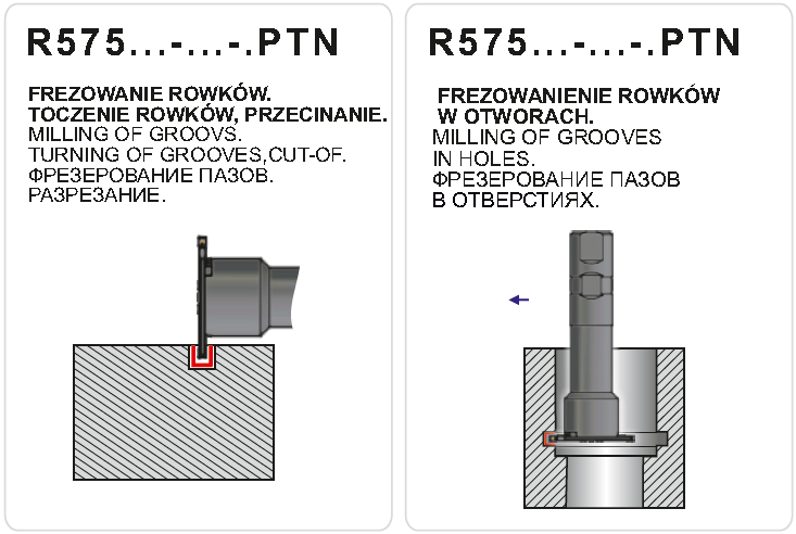 Stopková fréza kotoučová R575.62-050-3 pravotočivá s průměrem pracovní části 50 mm. Drážkovací fréza. Do frézy se upínají destičky typu PTN, způsob upínání destiček F. Typ uchycení frézy - stopka válcová s ploškou typ B.