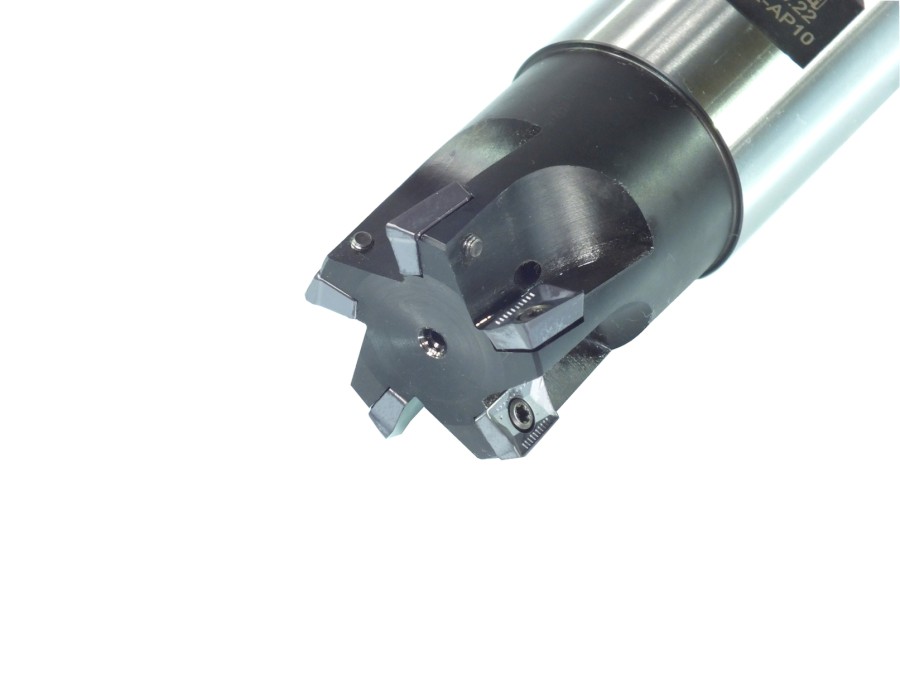 Stopková fréza R510.22-3232AP10 s vnitřním chlazením pravotočivá s průměrem pracovní části 32 mm a velikostí úchytu 32 mm. Čelní válcová fréza k=90° (A podle normy). Do frézy se upínají destičky typu A - rovnoběžníkového tvaru s úhlem 85°rovnoběžníko