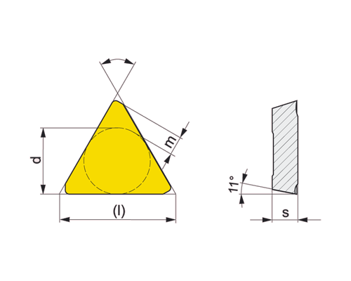 Vyměnitelná břitová destička TPKR 1603PDSR ;M8340 je frézovací. Primární užití pro materiály: oceli. Možné užití pro materiály: nerezové oceli, litiny. Destička je trojúhelníkového tvaru, jednostraná s utvařečem třísky bez otvoru. Destička je pozitivní s úhlem 11°. Úhel hřbetu fazetky je 15° a úhel nastavení je 90°. Velikost destičky neboli délka řezné hrany je 9,525 [mm]. Destička má tloušťku 3,18 [mm]. Destička má 1. fazetku s šířkou 0,1 [mm] a úhlem -5°. Dále úhel žlábku je 15°. Můžete použít posuv v rozsahu 0,10-0,30(0,40) [mm/ot]. Maximální rozsah hloubky řezu je 1,0-12,0(17,0) [mm]. Utvařeč třísky umožňuje obrábět za těchto podmínek: Vyšší řezná rychlost, mírně snížená tuhost soustavy (kolísavá hloubka řezu). Materiál destičky vám umožňuje použít: velmi těžké obráběcí podmínky, při snížené tuhosti soustavy (přerušovaný řez). Materiál destičky je slinutý karbid. Povlak destičky univerzální (PVD). Provedení řezné hrany: zaoblené hrany s fazetkou. Pravý směr posuvu. Destička má toleranci hlavního rozměru 0,013 [mm], toleranci tloušťky 0,025 [mm] a toleranci vepsané kružnice 0,05 ÷ 0,13 [mm].