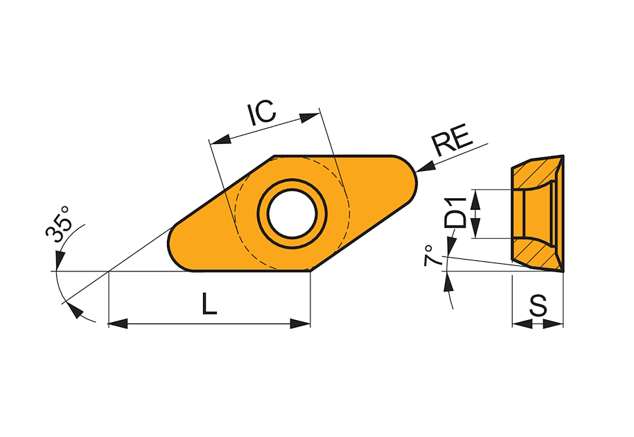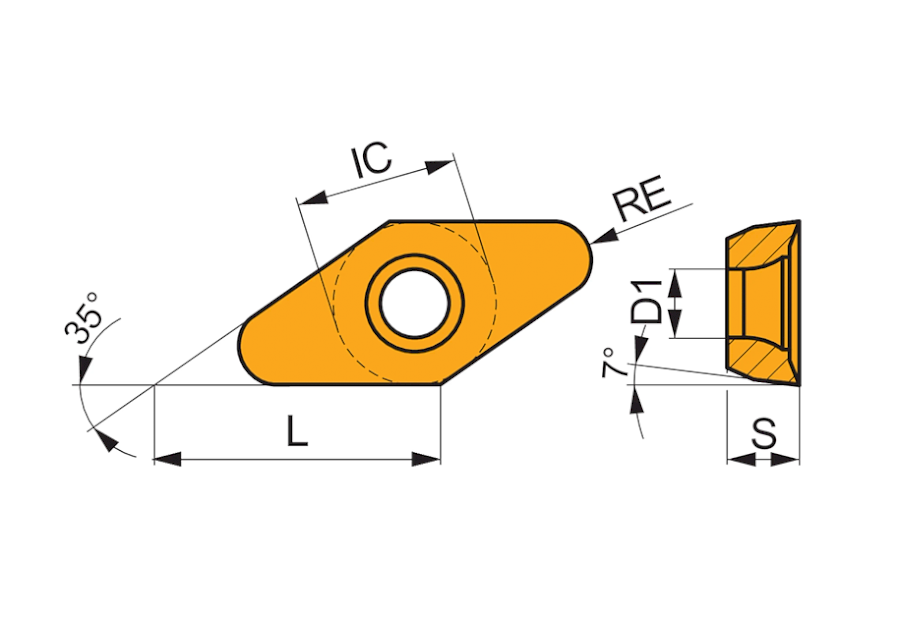 Jednostranné frézovací destičky VCGT 220530F-FA HF7 jsou kosočtvercové, s rádiusem 3,0 mm a hloubkou řezu 16,0 mm, určené pro neželezné kovy.