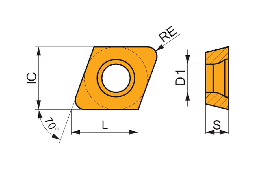 Destičky mají zaoblenou řeznou hranu a fazetku, což zvyšuje pevnost břitu a minimalizuje riziko jeho poškození při vstupu do řezu. Rádius 1,0 mm umožňuje plynulou tvorbu třísky a je vhodný pro dokončovací a polodokončovací operace. Přesnost zaměnitelnosti destiček dle tolerancí ISO-H zaručuje snadnou výměnu a opakovatelnost bez nutnosti dodatečného seřizování.