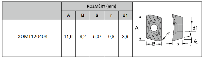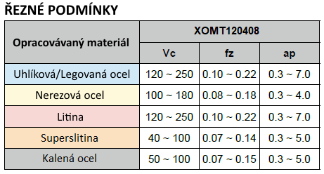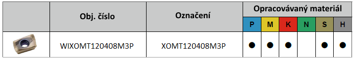 Frézovací vyměnitelná břitová destička XOMT 120408 M3P je velmi výkonná destička pro frézování ocelí, nerezi, litiny, superslitin na bázi niklu a titanu a také kalených ocelí.