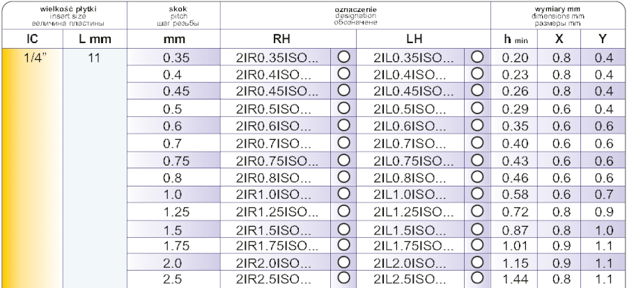 Závitovací destička 2 IR 1,0 ISO VTX vnitřní pravá. Velikost destičky - průměr kružnice vepsané je IC 1/4". Plný profil, skok závitu 1 mm. Norma ISO - metrický závit, třída karbidu VTX - nová univerzální třída, první volba.