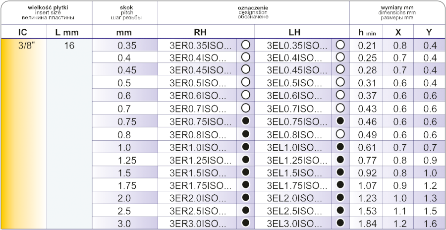 3 ER 1,5 ISO VTX závitovací destička