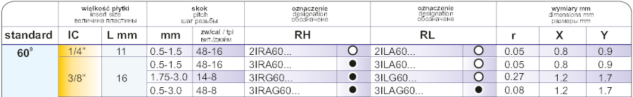 Závitovací destička 3 IR AG60 VTX vnitřní pravá. Velikost destičky - průměr kružnice vepsané je IC 3/8". Neúplný profil 60°, skok závitu 0,5 - 3 mm.Třída karbidu VTX - nová univerzální třída, první volba.